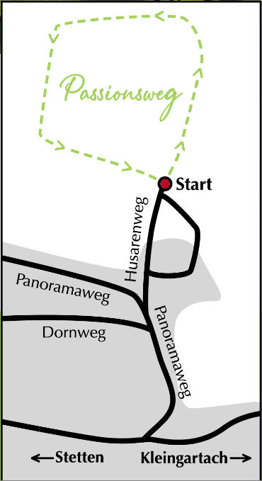 Die Wege sind teilweise uneben, wir empfehlen festes Schuhwerk. Das Begehen des Passionsweges ist auf eigene Gefahr.